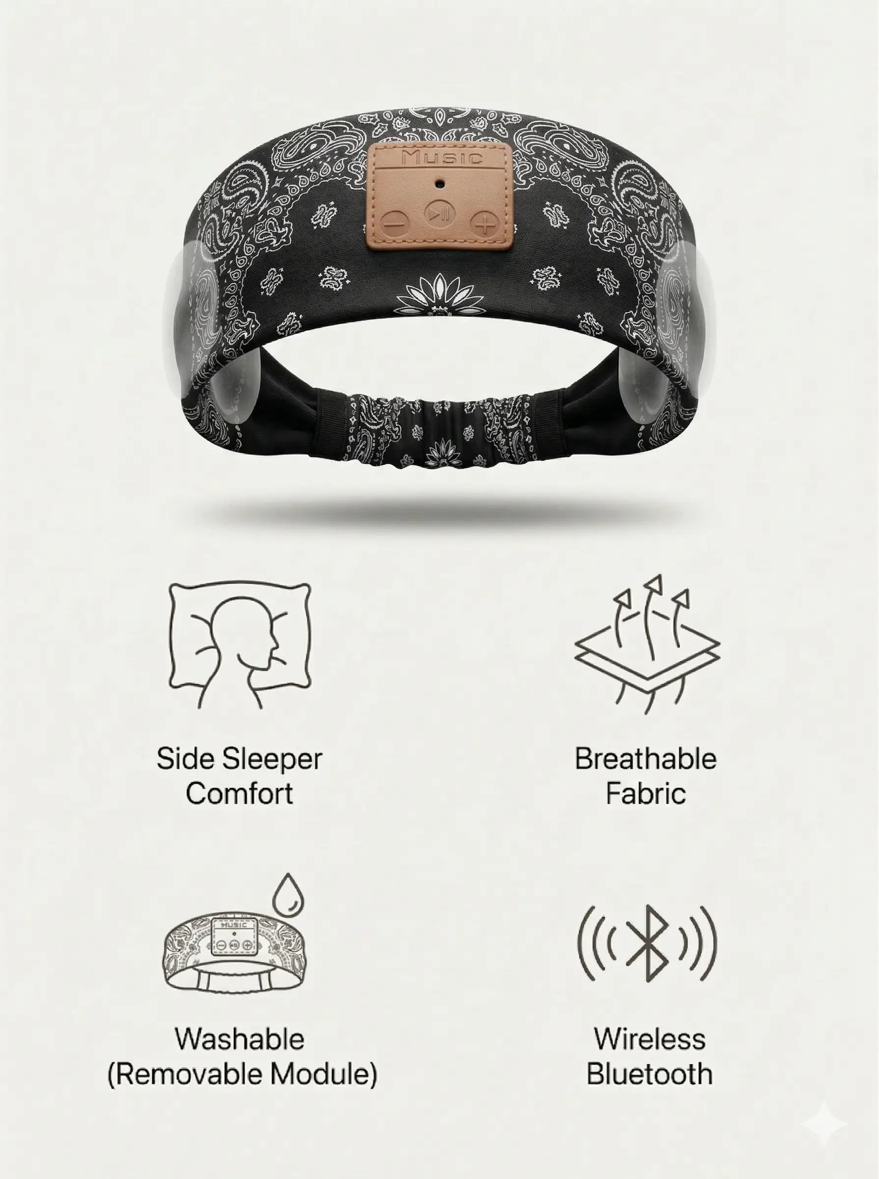 Soft breathable fabric keeps the headband comfortable for extended listening while relaxing, sleeping, or travelling.