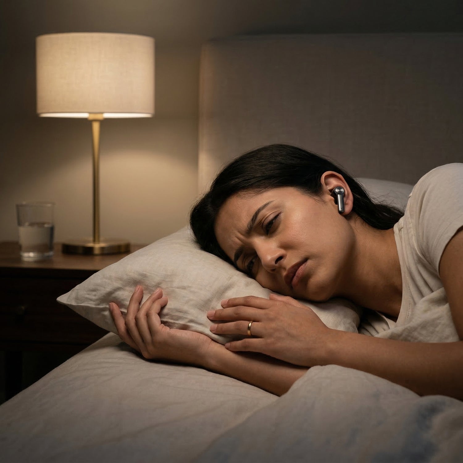 I sleep on my side and earbuds used to press into my ear all night. With this, it’s just soft… no pain, no waking up to fix anything. Now I actually stay asleep properly, which was rare before